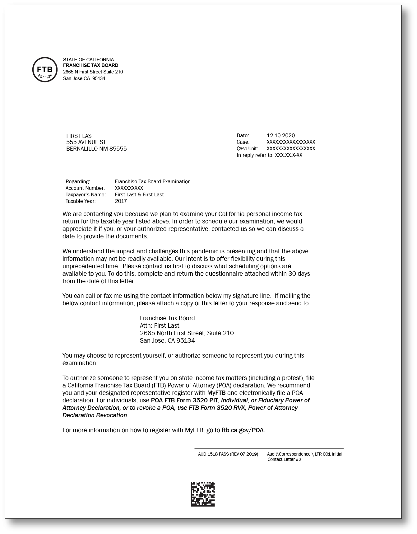 California Aud 1518 Pass Sample 1