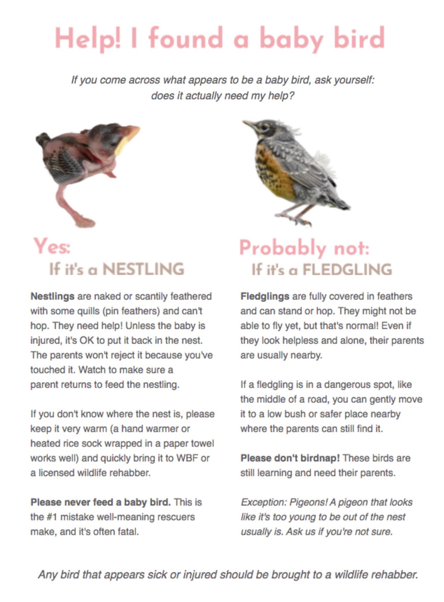 If You Find A Baby Bird Gibsons Wildlife Rehabilitation Centre